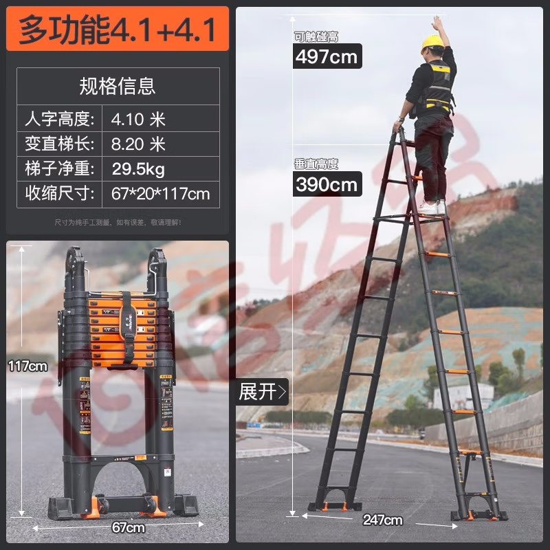 巴芬伸縮梯多功能梯子家用梯人字梯加厚鋁合金工程梯升降直梯折疊樓梯 單面直梯4.7米【靠墻使用+掛鉤】