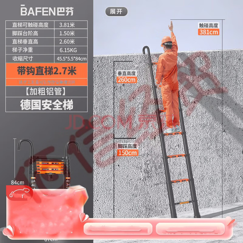 巴芬(BAFEN)家用鋁合金伸縮人字梯