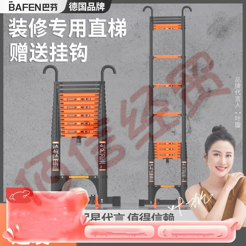 巴芬伸縮梯多功能梯子家用梯人字梯加厚鋁合金工程梯升降直梯折疊樓梯 單面直梯3.5米【靠墻使用+掛鉤】 自營
