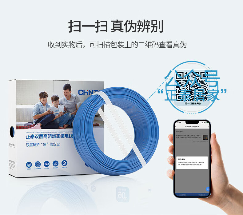 正泰(CHNT)電線電纜JHZ-BV10平方50米雙層絕緣環(huán)保阻燃國標(biāo)家裝銅芯硬線(其它型號咨詢客服) 自營
