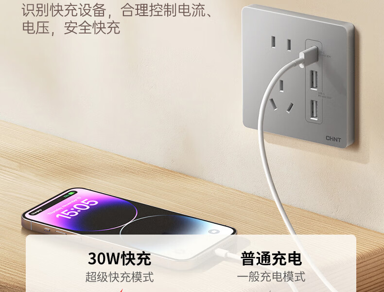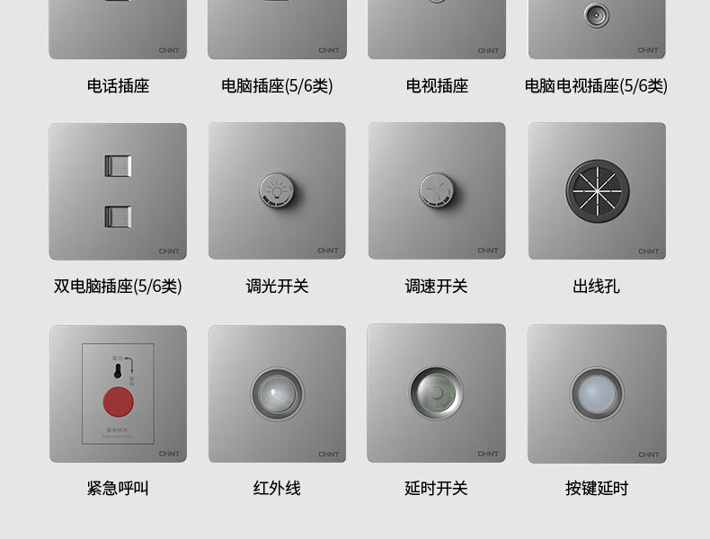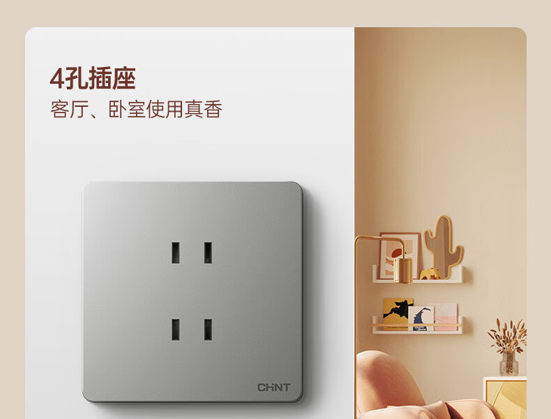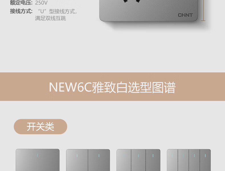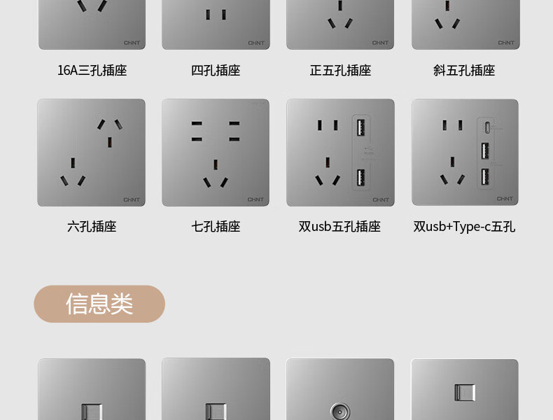 正泰(CHNT)開關(guān)插座墻壁面板家用86型面板斜五孔插座NEW6C10只裝幻銀灰(其它型號咨詢客服) 自營
