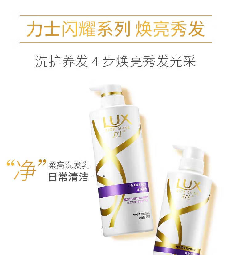 力士(LUX)(水潤絲滑、新活炫亮)柔亮洗發(fā)乳650G含玻尿酸奢寵香氛(一箱6瓶,整箱售) 自營