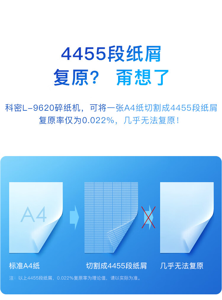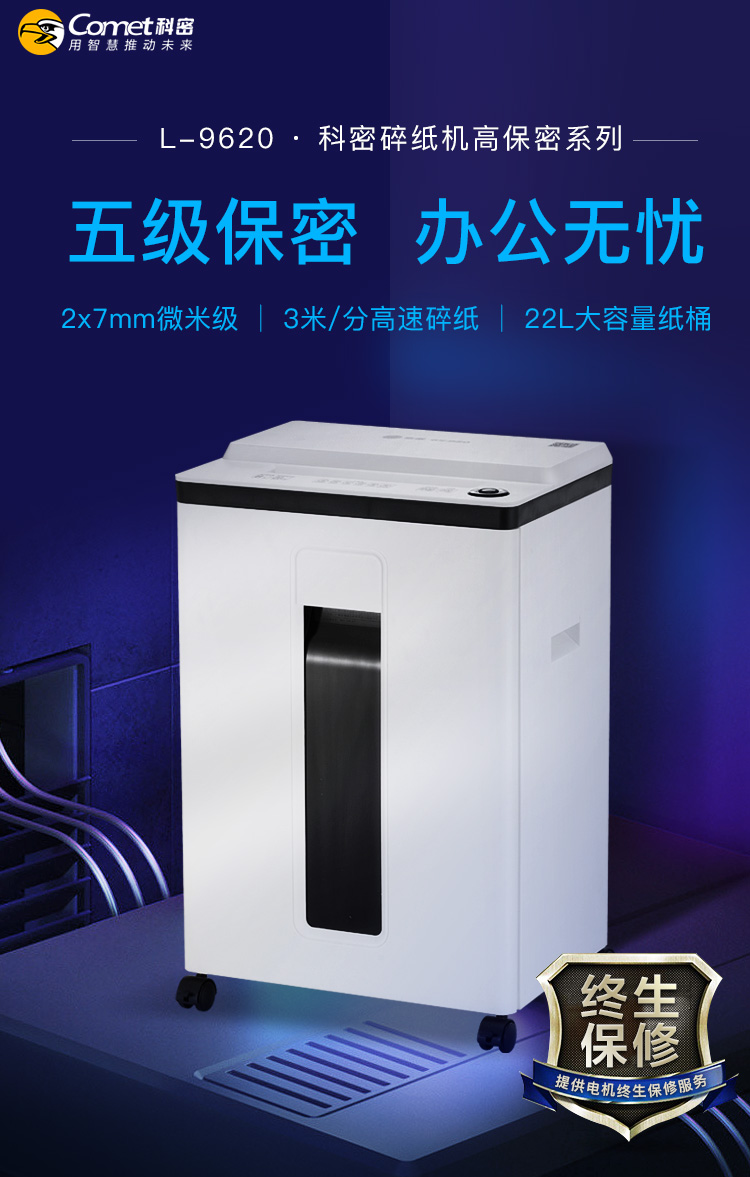 科密(comet)5級(jí)保密辦公商用碎紙機(jī)(單次8張持續(xù)30分鐘22L)L-9620 自營(yíng)