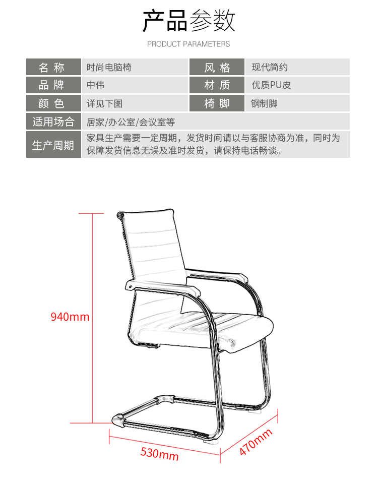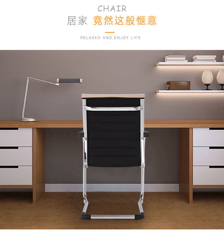 中偉電腦椅家用弓形會議椅職員辦公椅子棋牌室麻將椅黑色 自營