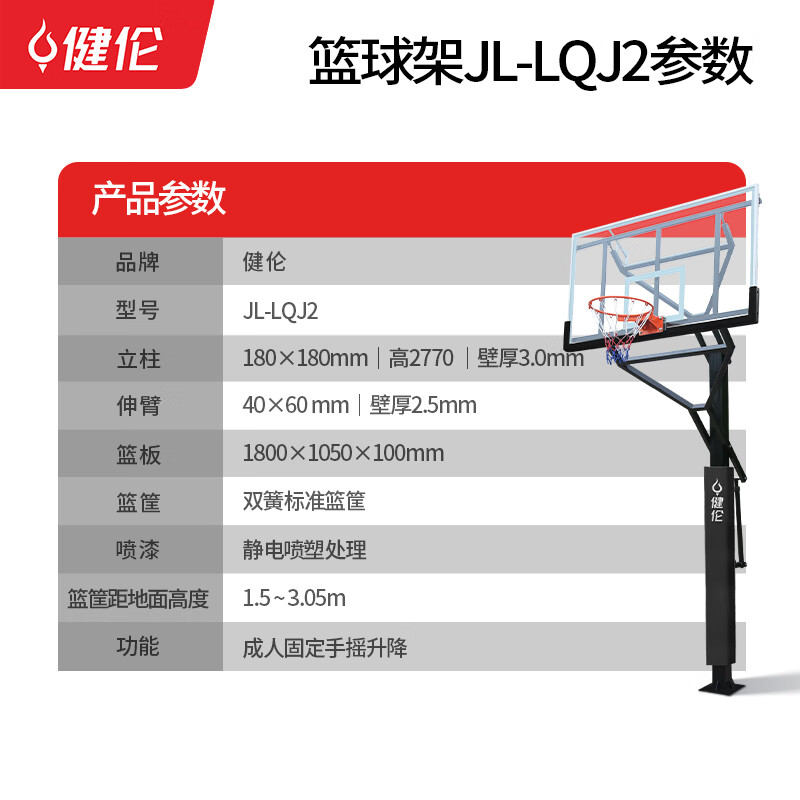 健倫籃球架成人固定手搖升降地理180籃球架