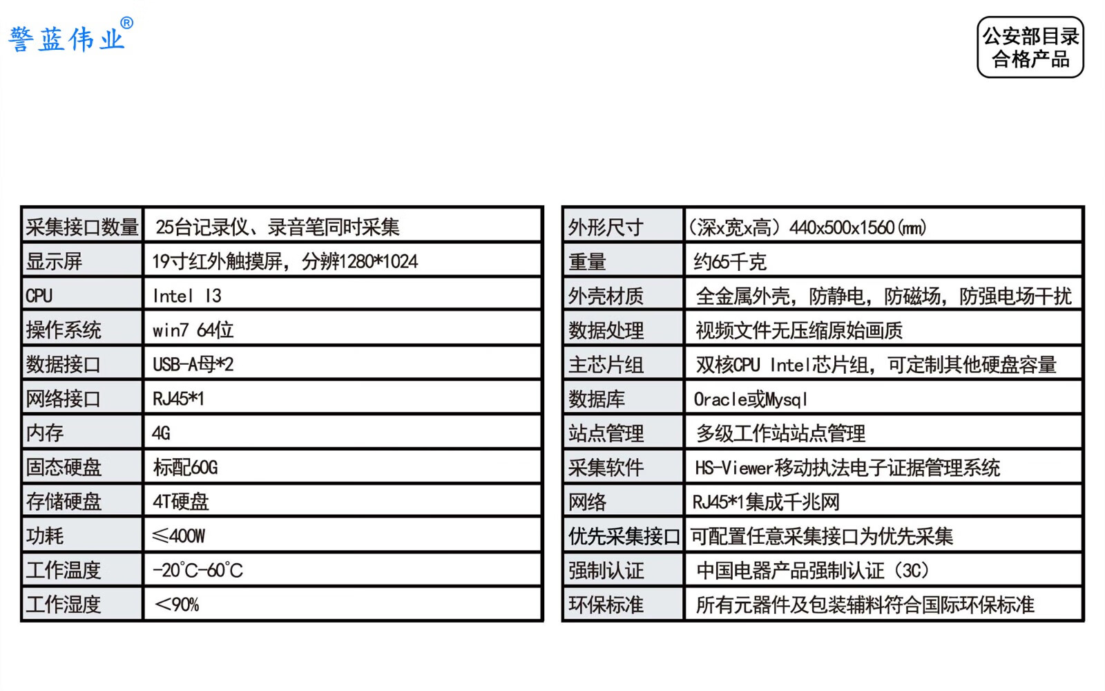 警藍(lán)偉業(yè)執(zhí)法記錄儀數(shù)據(jù)采集站W(wǎng)5(ZCS-JLWW5)4T8T16T25口40T 自營(yíng)
