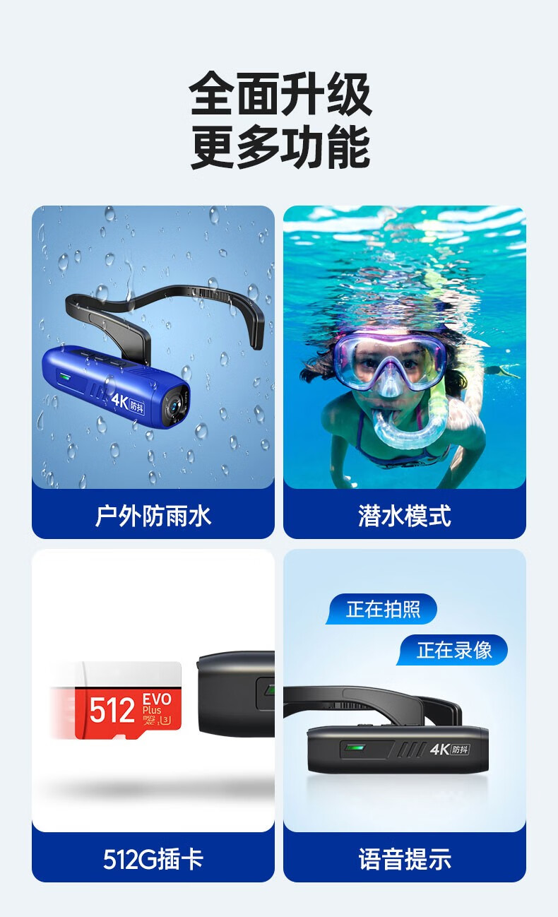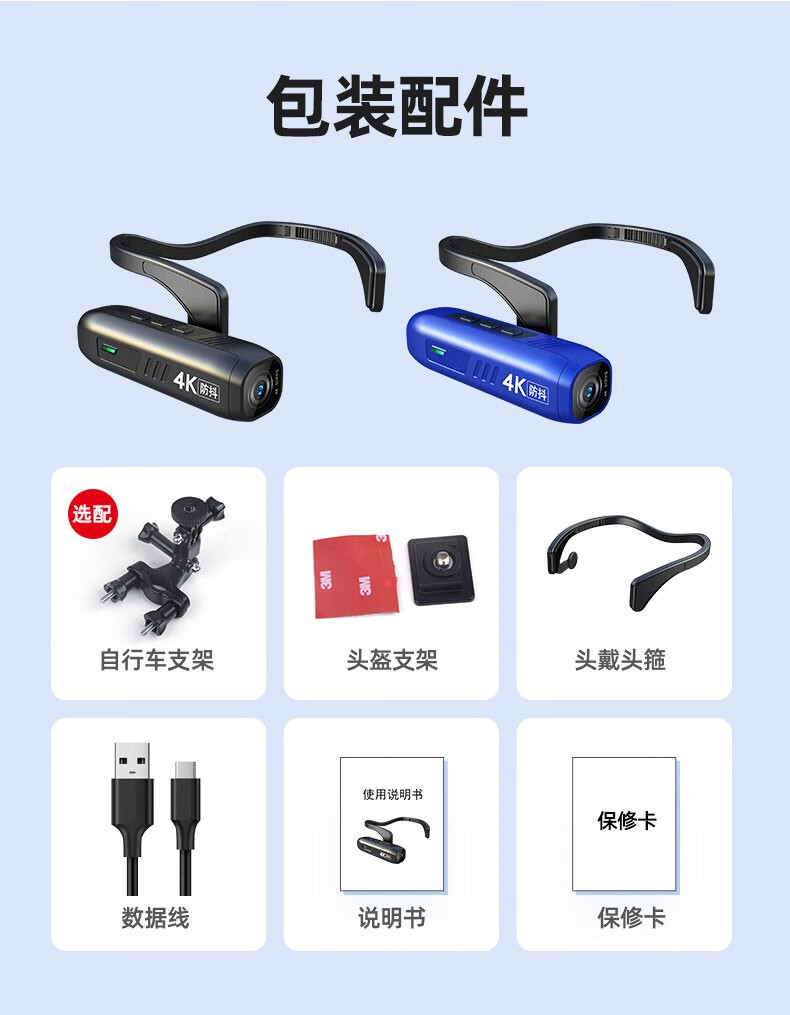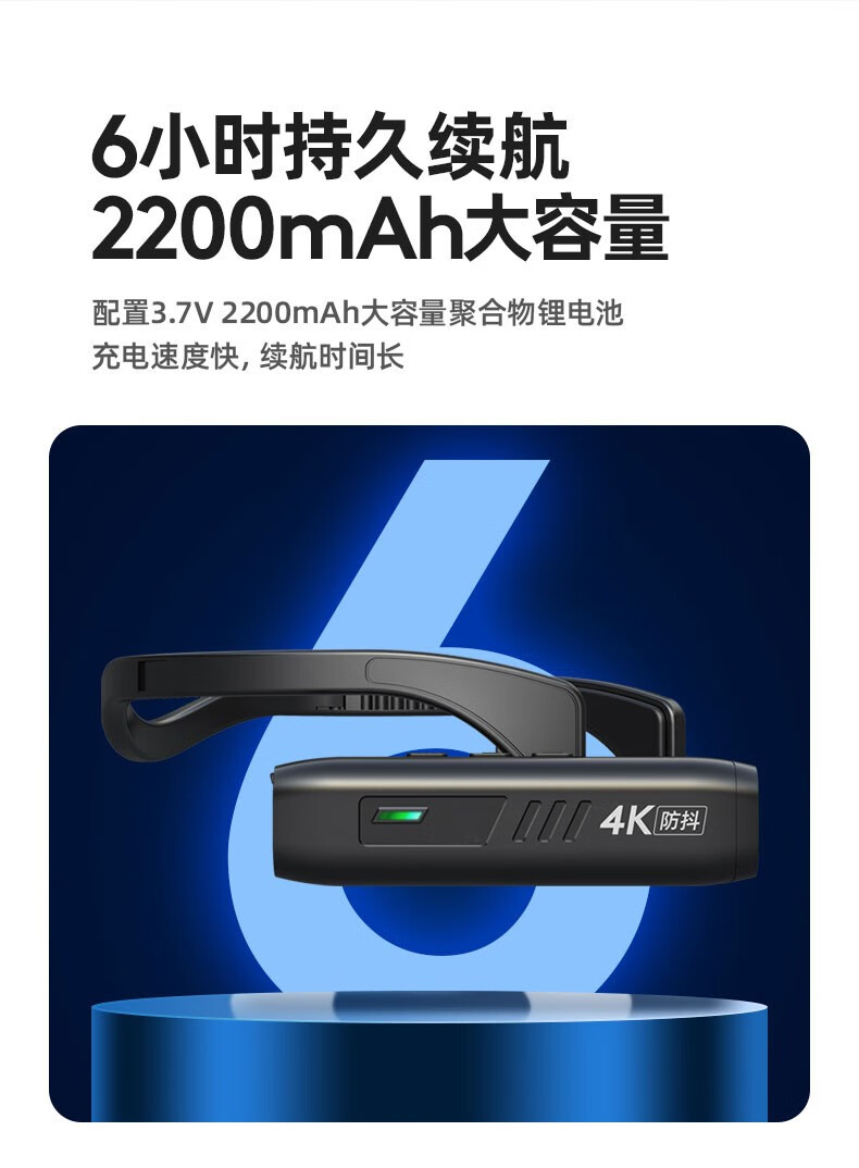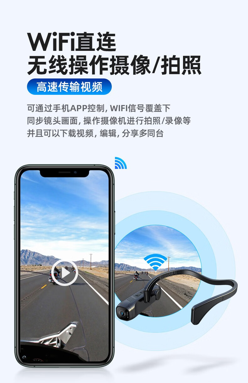 警藍偉業(yè)DSJ-H1耳掛式執(zhí)法記錄儀4K高清頭戴式運動錄像機wifi直連256G 自營