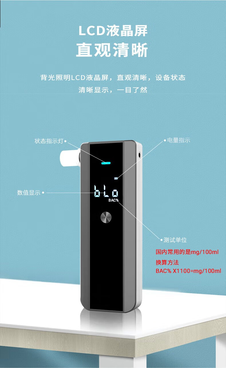 警藍偉業(yè)酒精測試儀吹氣式呼氣酒精檢測儀查酒駕專用檢測儀測酒駕JC-188黑色 自營
