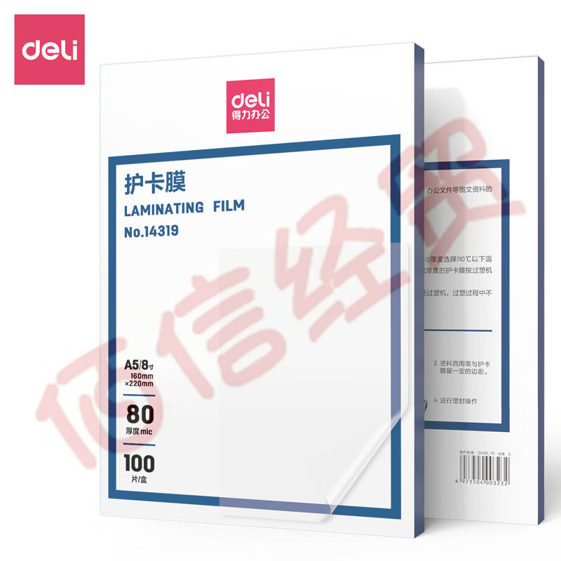 得力14319護卡膜8寸厚度80mic(透明白)(100片/盒)(定制) 自營