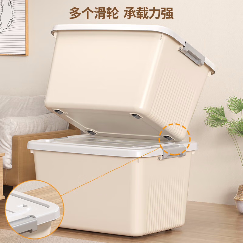 拉桿書本收納箱卡其色-大號【帶萬向輪+拉桿】 1個裝