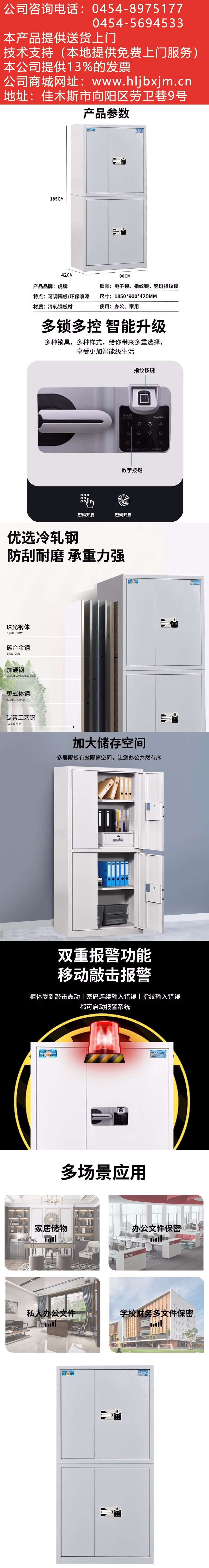 虎牌保險柜家用辦公小型指紋密碼保險箱全鋼防盜床頭保密柜可入墻入柜保管箱博雅系列白色60cm
