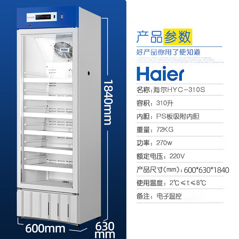 海爾(Haier)醫(yī)用冷藏柜2-8度/8-20度藥品陰涼柜冷藏箱風(fēng)冷無霜展示柜冰柜醫(yī)藥冷柜藥品柜保鮮柜醫(yī)院疫苗實驗室 2~8℃冷藏箱HYC-310S升帶門鎖 自營