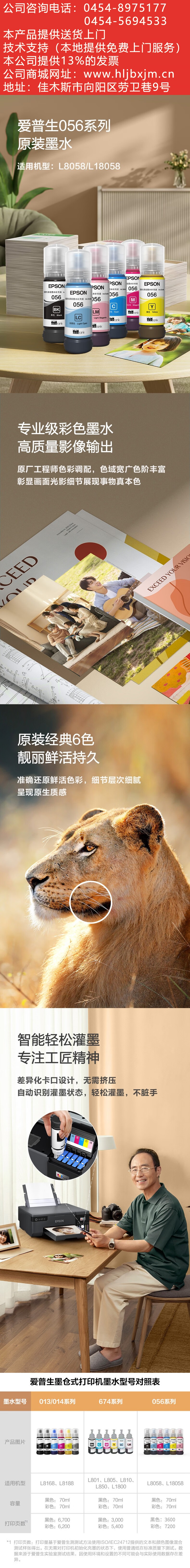 愛普生(EPSON) 原裝056墨水---淺青色墨水 自營