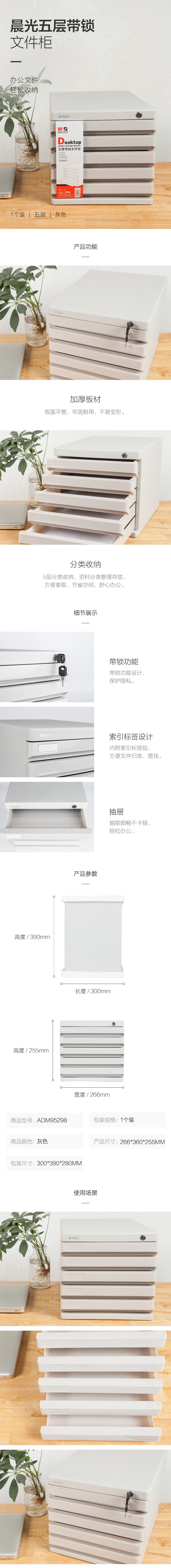 晨光五層帶鎖文件柜ADM95298(灰) 自營