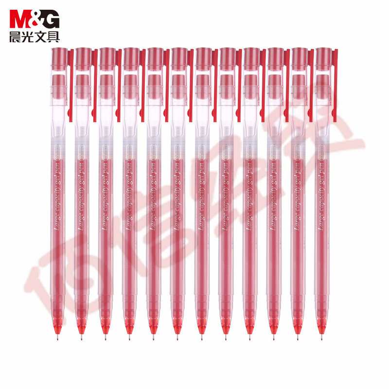 ■晨光0.5mm紅色中性筆-筆桿筆芯一體化水筆 12支/盒AGPY5501 自營(yíng)