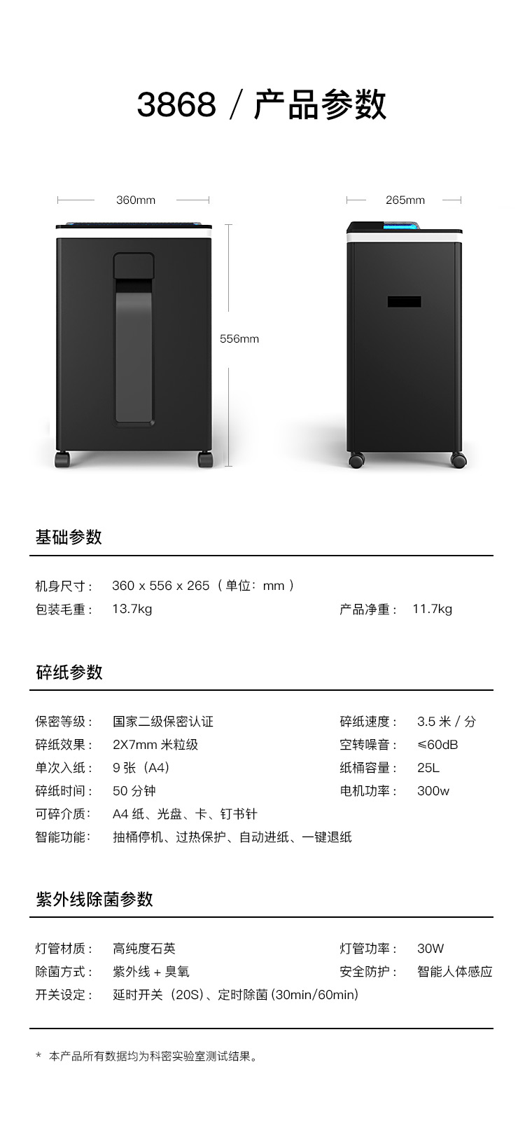 科密(comet)3868碎紙機(jī) 5級(jí)保密辦公商用家用除菌除螨(單次9張 持續(xù)50分鐘 25L 可碎卡、光盤(pán) ) 自營(yíng)