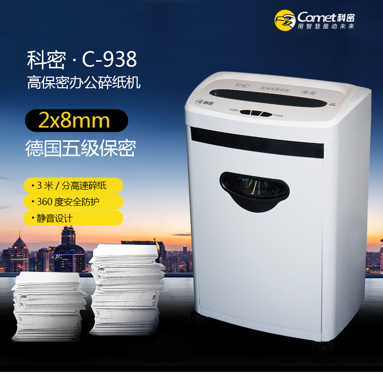 科密(comet)c-938 5級保密辦公商用碎紙機(jī)(單次6張 持續(xù)10分鐘 17L ) 自營