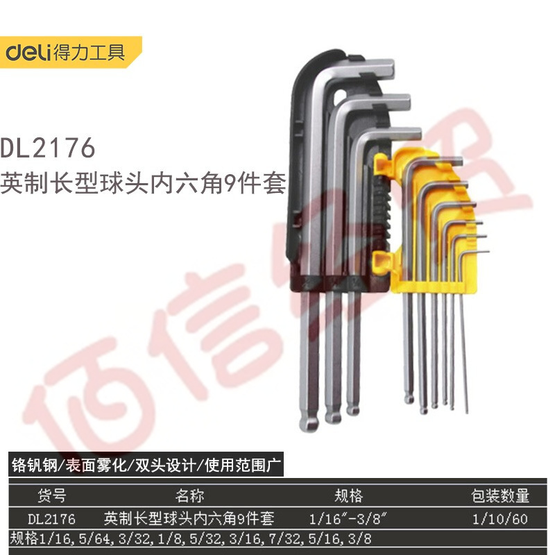 ■得力(deli)內(nèi)六角扳手套裝內(nèi)六角螺絲刀工具套裝加長(zhǎng)內(nèi)六角公英制內(nèi)六方組套 英制長(zhǎng)型球頭內(nèi)六角9件套DL2176 自營(yíng)
