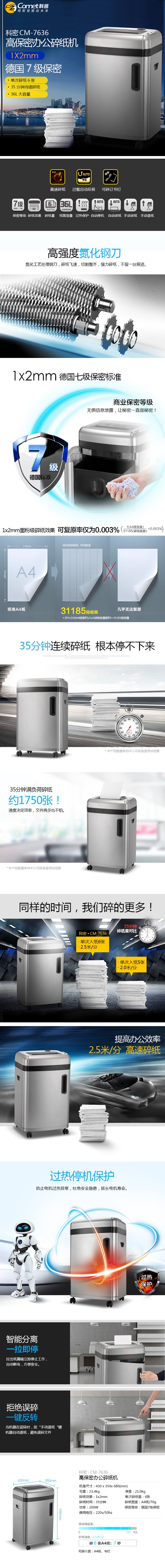 科密 Comet CM-7636 碎紙機 辦公商用碎紙機 單次6張 持續(xù)35分鐘 自營