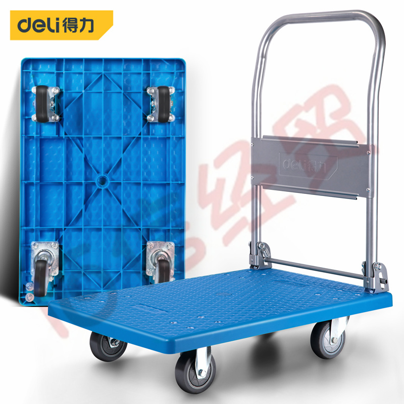 ■得力(deli)輕音輪平板車手推車折疊手拉車拖車小推車?yán)涇囁芰习徇\車 小號73x47cm 承重約300斤 DL431150 自營