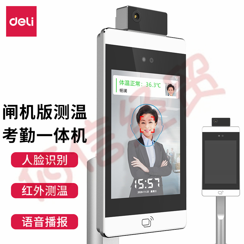 ¥736.00得力(deli)DL-ACS804-TW 人臉識(shí)別測溫門禁考勤一體機(jī) 8英寸屏幕顯示醫(yī)院學(xué)校寫字樓快速測溫識(shí)別(閘機(jī)版)