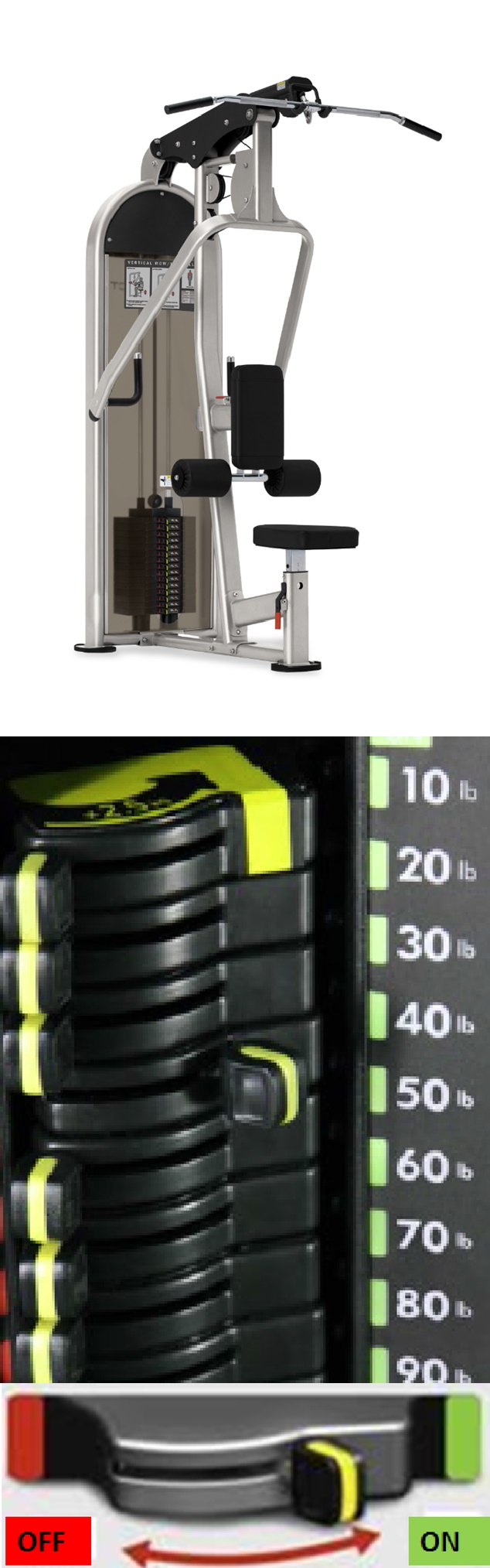 技術(shù)參數(shù): ●外觀尺寸(長寬高):50?x 47?x 84?(127 x 119 x 213 cm) ●重量:473 lb (215 kg) ●配重:235 lb (107 kg) ●全球領(lǐng)先的“Lock N Load”專利撥片式調(diào)節(jié)系統(tǒng),調(diào)節(jié)重量無需拔上拔下,只需輕輕一撥即可。 ●采用40mm x 80mm,50mm x 100mm橢圓管,堅(jiān)固穩(wěn)定;部件均經(jīng)激光精確切割,外觀俊朗;精鋼制造直徑1"的滾軸配有25mm密閉軸承,密閉式軸承則能夠確?;喒ぷ鲿r(shí)的平滑安靜; ●標(biāo)準(zhǔn)美制高強(qiáng)度鋼絲式傳動(dòng),可承受2000lbs拉力,同時(shí)通過皮帶上5/8"的螺旋螺紋可以調(diào)節(jié)皮帶的松緊度,更加延長了*大使用壽命; ●滑輪采用玻璃纖維制造的強(qiáng)化滑輪配有深V字型凹槽,確保皮帶的穩(wěn)定,并擁有出色的旋轉(zhuǎn)性能。 ●舒適的橡膠材質(zhì)的高把手。 ●單向棘輪,五檔位座墊調(diào)節(jié),低摩擦設(shè)計(jì)插拔螺栓,穩(wěn)定安全。 ●動(dòng)態(tài)的使用說明指示牌。 ●組合式胸部和大腿護(hù)墊--器械設(shè)置快捷 ●棘輪快速座椅調(diào)整--直觀,省時(shí) ●加襯握把--直徑小,使提拉練習(xí)更舒適