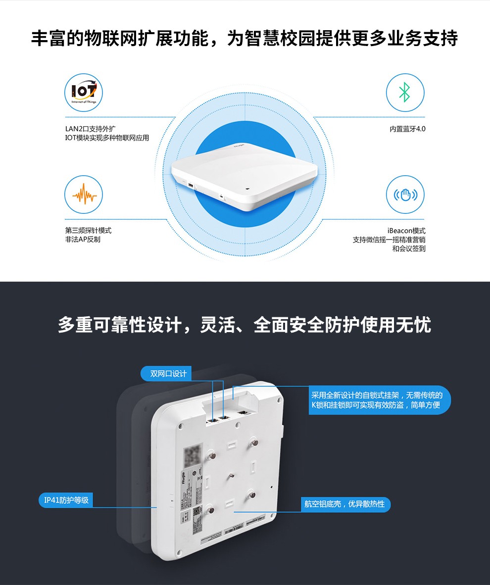 銳捷(Ruijie)無線路由器 RG-EG105GW 千兆1317M 企業(yè)級網關路由 雙WAN口 無線AC控制器